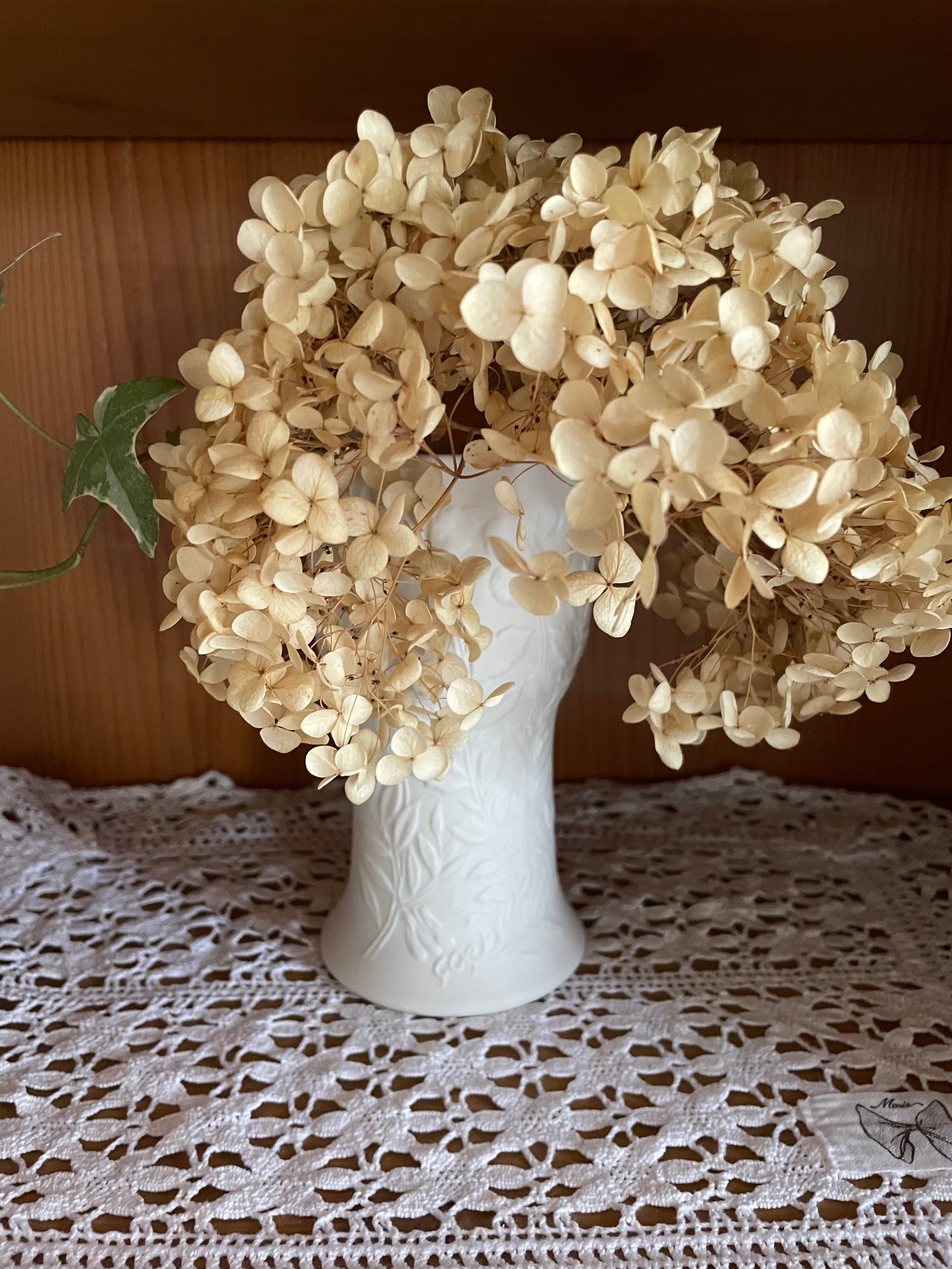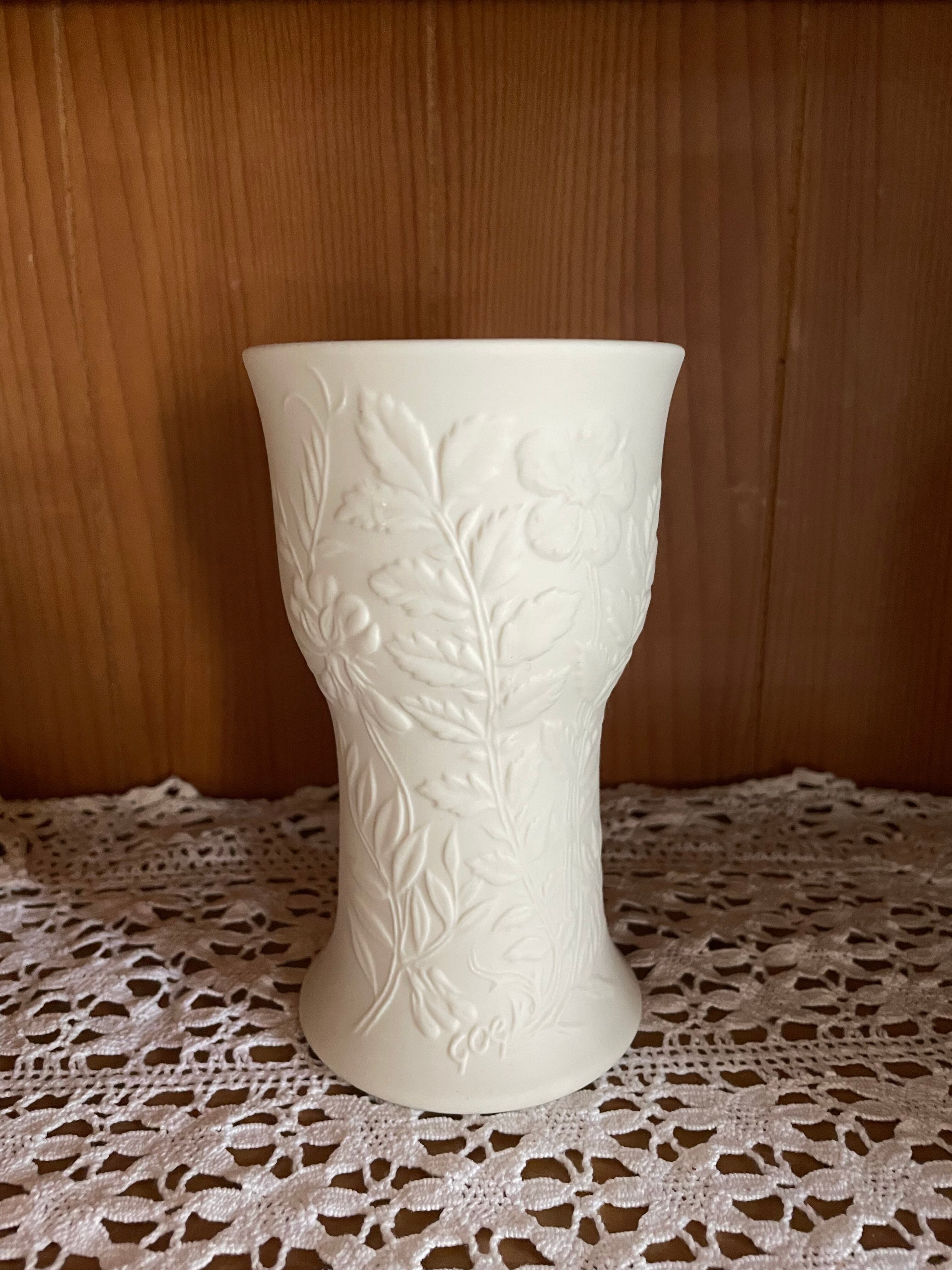 Suviシリーズ全体の象徴である「夏」を思わせる花や葉の模様が、花瓶の外面に繊細に施されています。