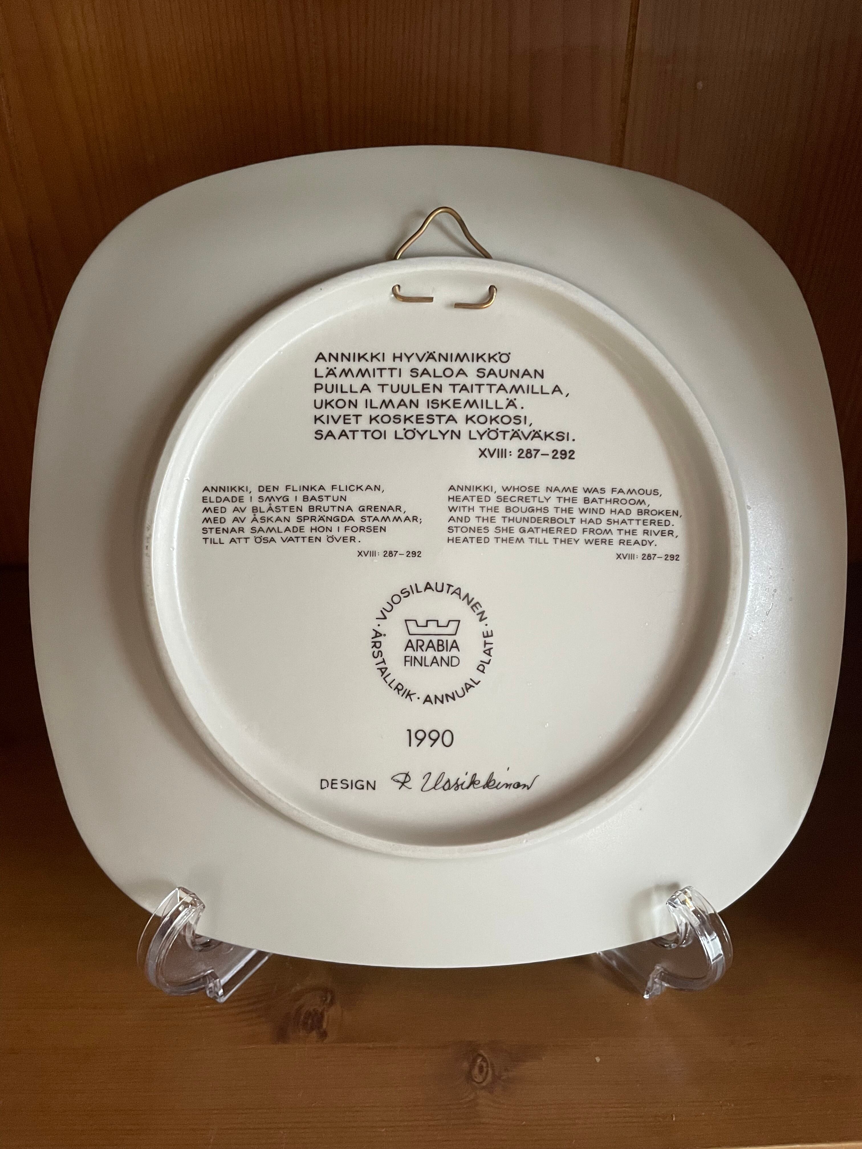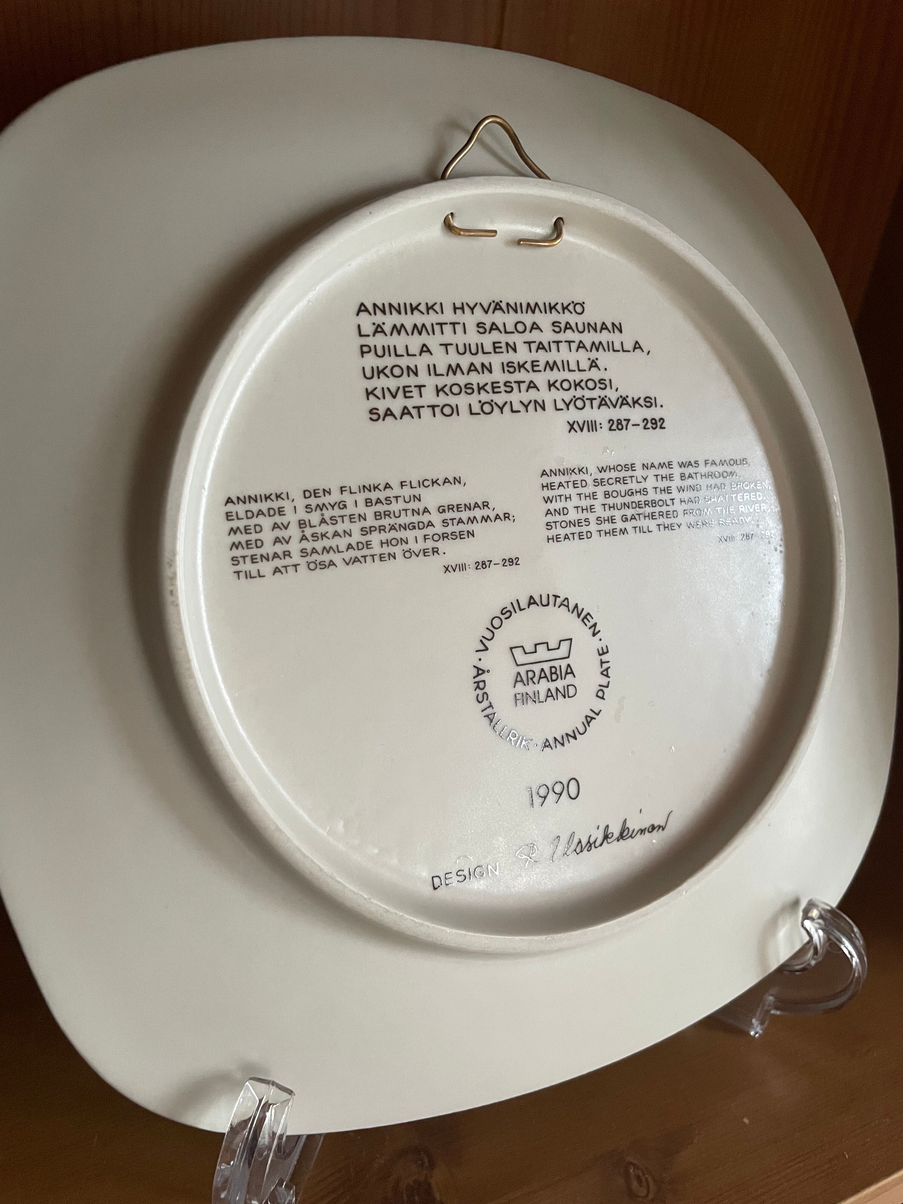 フィンランドの名窯 Arabia(アラビア)による「カレワラ」シリーズのイヤープレート、1990年版です。